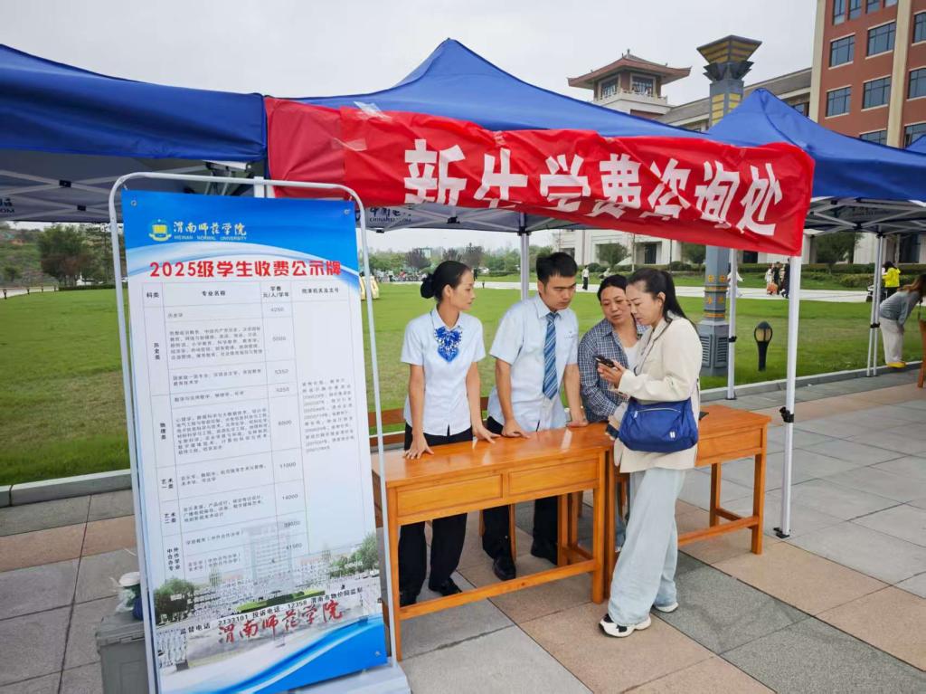 迎新期间,计划财务处在朝阳校区和富平校区设立收费咨询窗口与服务点,安排工作人员与志愿者提供引导、答疑及一对一协助。除“校园统一支付平台”线上缴费方式外,现场还配备POS机、现金收款设备等传统支付渠道,满足不同学生的缴费需求。